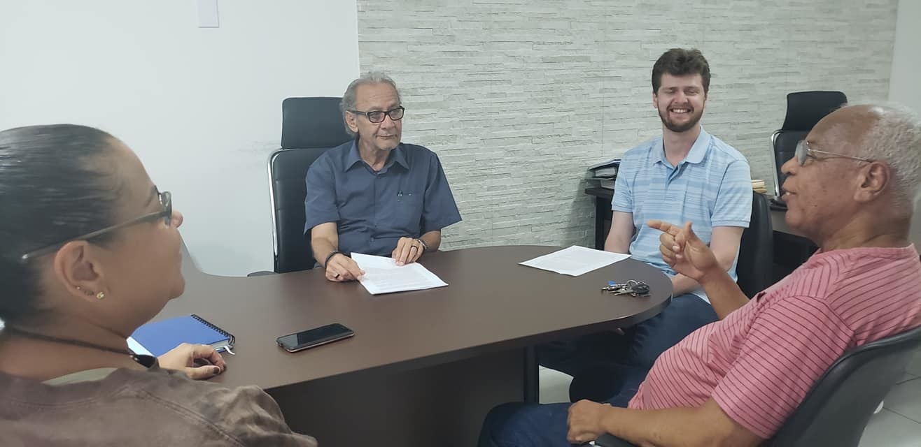 #EcoEscola reunião entre o presidente Rodrigo Piva, secretário-geral Jonas Cavada e a coordenadora da Comissão Estadual de Animais Silvestres (CEAS) Paula Helena Santa Rita com o professor Cláudio Madruga sobre a implantação da Eco Escola na Comunidade Furnas da Boa Sorte com apoio do CRMV-MS.